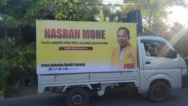 Terkini.id, Makassar - Bakal calon anggota DPRD Sulsel Nasran Mone punya cara unik untuk mensosialisasikan dirinya maju calon anggota DPRD Sulsel dari Partai Golkar melalui daerah pemilihan Makassar A meliputi, Kecamatan Mariso, Mamajang, Makassar, Ujung Pandang, Wajo, Bontoala, Tallo, Ujung Tanah, Tamalate, Rappocini dan Kepulauan Sangkarrang.