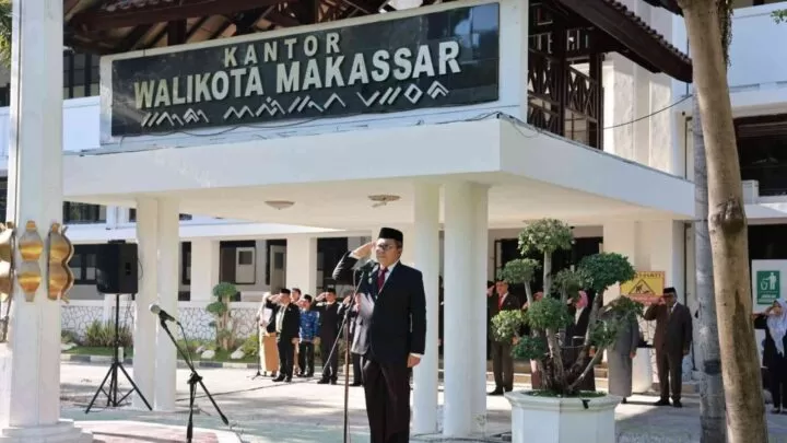 Terkini.id, Makassar - Wali Kota Makassar Moh Ramdhan Pomanto memimpin upacara Peringatan Hari Kesaktian Pancasila di Halaman Kantor Balai Kota, Minggu, 1 Oktober 2023.