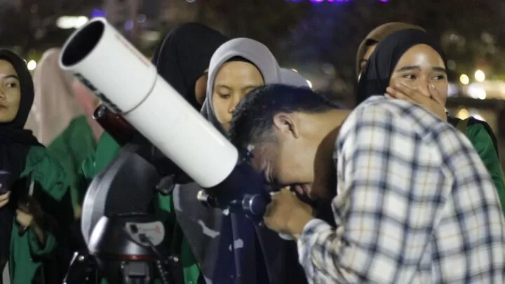 Pakai Teleskop, Mahasiswa Ilmu Falak UIN Alauddin Makassar Lakukan Pengamatan Gerhana Bulan Sebagian