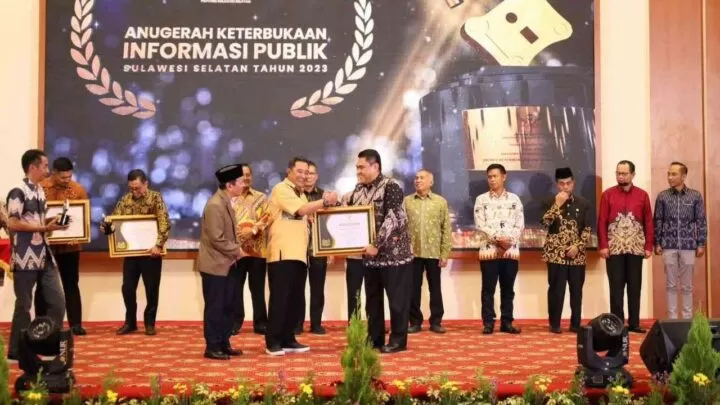 Dihadiri oleh perwakilan kabupaten/kota se-Sulsel, penyerahan penghargaan berlangsung di Aula Tudang Sipulung Rumah Jabatan Gubernur Sulawesi Selatan, Rabu 20 Desember 2023 malam.