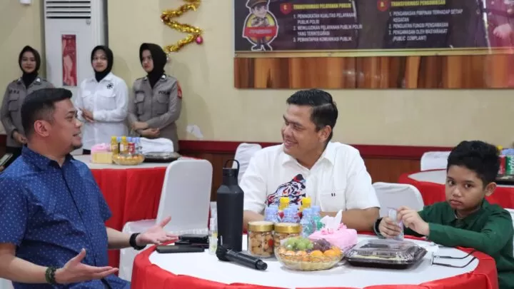 Terkini.id, Gowa - Kapolres Gowa, AKBP RTS Simanjuntak beserta Staf dan Bhayangkari merayakan Natal 2023 dengan menggelar Open House di Aula Endra Dharmalaksana Polres Gowa pada Senin, 25 Desember 2023.