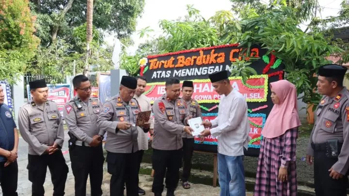Selain memberikan dukungan moral, perwakilan dari Polres Gowa juga membawa berbagai bentuk tali asih sebagai tanda belasungkawa dan penghormatan kepada keluarga yang berduka.