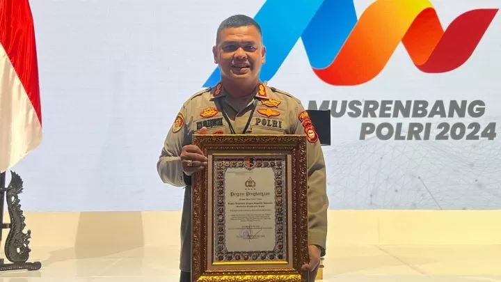 Terkini, Gowa - Kapolres Gowa, AKBP RTS Simanjuntak menerima penghargaan sebagai unit pelayanan publik terbaik dalam kategori Pelayanan Prima di acara Musyawarah Rencana Pembangunan (Musrenbang) Polri 2024, Selasa, 9 Juli 2024.