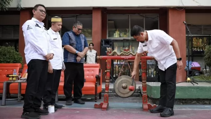 Usai sambutan, Arwin didaulat membuka lomba yang ditandai dengan pemukulan gong.