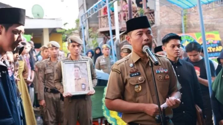 Terkini, Makassar - Pjs Wali Kota Makassar Andi Arwin Azis memimpin langsung Upacara Pelepasan Jenazah Kepala UPTD Perlindungan Perempuan dan Anak (PPA) Makassar, Muslimin Hasbullah di rumah duka, Minggu, 13 Oktober 2024.