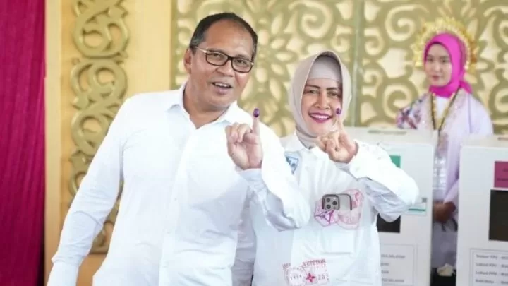 Terkini, Makassar - Ketua TP PKK Kota Makassar, Indira Yusuf Ismail bersama Wali Kota Makassar, Moh Ramdhan Pomanto, menyalurkan hak pilihnya dalam Pemilihan Gubernur dan Wakil Gubernur Sulawesi Selatan, serta Wali Kota dan Wakil Wali Kota Makassar.