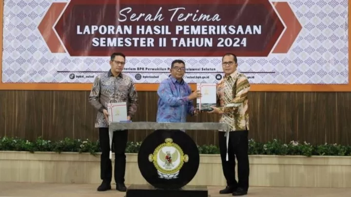 Penyerahan LHP Semester II Tahun 2024 kepada delapan pemerintah daerah di Sulawesi Selatan termasuk Kota Makassar berlangsung di Kantor BPK Perwakilan Sulsel, Jalan AP Pettarani, Kamis, 9 Januari 2025.