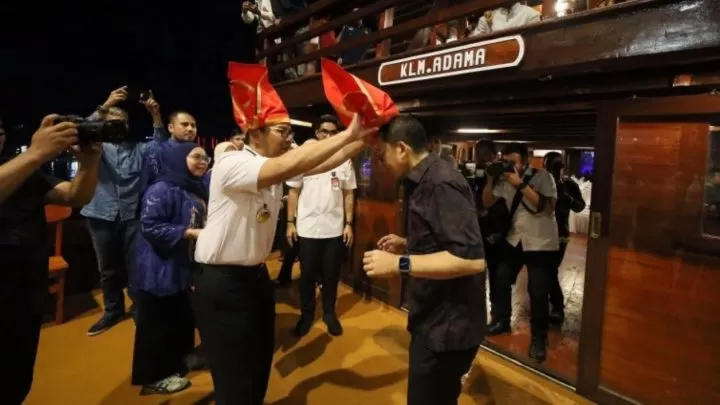 Sudah menjadi tradisi pemerintah kota, Danny Pomanto menjamu Menteri Kebudayaan Fadli Zon di atas Kapal Pinisi sembari menikmati angin sepoi-sepoi Pantai Losari di malam hari.