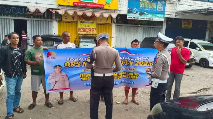 Terkini, Gowa - Satuan lalulintas Polres Gowa dipimpin oleh Kanit Keamanan dan keselamatan (Kamsel) Ipda Usaman kembali turun kejalan mensosialisasikan 8 program prioritas Operasi Keselamatan Pallawa 2025, Senin, 17 Februari 2025.
