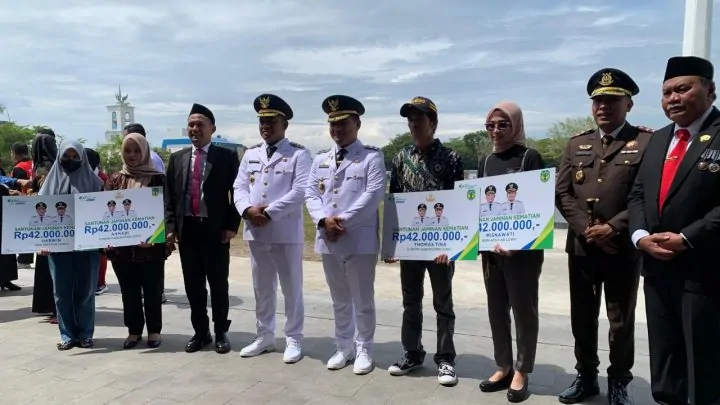 Dalam kesempatan itu, BPJS Ketenagakerjaan turut menyerahkan santunan Jaminan Kematian (JKM) secara simbolis kepada ahli waris kepesertaan Non ASN dan anggota Korpri yang telah meninggal dunia.