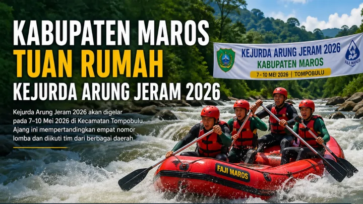 Terkini, Maros — Federasi Arung Jeram Indonesia (FAJI) Kabupaten Maros memastikan kesiapan sebagai tuan rumah Kejuaraan Daerah (Kejurda) Arung Jeram 2026 yang akan berlangsung pada 7–10 Mei 2026 mendatang di Kecamatan Tompobulu.